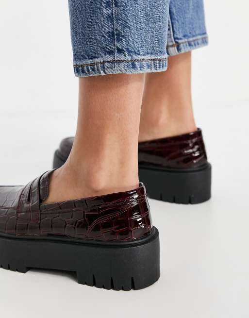 Get a Sale Alert. Selected leather penny loafers with chunky sole in burgundy 6090 174. Fast shipping easy returns to the USA.